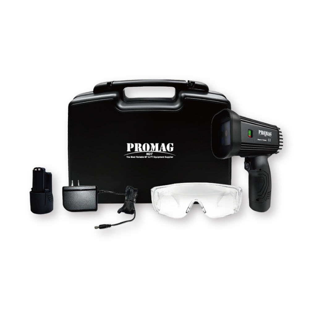 The VICTORY II is a portable, hand-held UV lamp designed for non-destructive testing applications such as fluorescent penetrant testing and magnetic particle inspections. It fully complies with NDT specifications, including ASTM E3022 and RRES 90061. Lightweight and rugged, it boasts an IP64 rating, ensuring dust-tight and water-resistant performance. With its state-of-the-art heat sink design, the VICTORY II is mechanically cooled without the need for a fan.